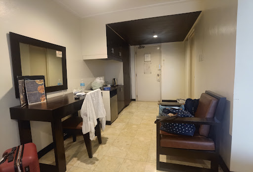 Read moreI stayed here for 4 nights. Lobby looked good, rooms looked good. Decent internet in the room. Economy room has decent size with big windows. Really close to a lot of key places like St. Luke's Medical Extension Center, literally a 2 minute walk. Near a Ministop (convenient store), a Puregold (grocery store), some restaurants and cafe at the back and more in the area. Pretty close to the US Embassy and Robinson's Manila. I think its location is its main asset. The hot water in the bathroom is a little problematic, it's kind that you won't really get the perfect temp for more than 3 minutes. You adjust it, then it will be good for a minute or two and then go to super hot, so you slightly switch it to cold to even it then it gets too cold after a minute or two. No slippers. No free bottled water. No robes. No safe. The only outlet you can use are the two outlets in the bathroom (very very inconvenient), I had to unplug their tv so I can charge my laptop...