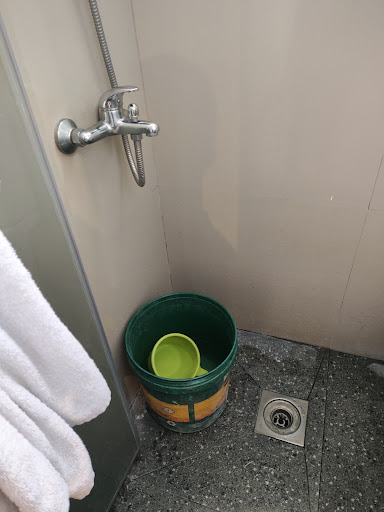 Everything else in this "hotel" is broken. The shower is not working, no heater, TV does not have reception, no intercom, the drainage on the bathroom floor does not have a cover and imagine having a Boysen paint as your water bucket and a dirty old dipper to make it even more unbearable. The latter was relatively cheap. So I don't understand why a place like this can't afford to buy a nicer pail and dipper.
