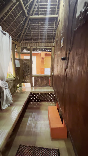 We had a gorgeous little bamboo cabin here (this does not have air con, just a fan, though you can get air con in the bungalow which costs more). We stayed for two nights. Owners and staff are very friendly and helpful, they hooked us up with a guide who looked after us for the time we were there, taking us to different locations on his 'tricycle' - motorbike and sidecar. We didn't have our room made up during our stay but I'm sure the owners would be happy for you to request housekeeping should you need it. ||Toilets/sink areas are well kept and provide toilet roll and showers are clean but no hot water (it's just air temp) and no toiletries are provided (this refers to the shared comfort rooms/showers on site). You can pay (1 peso!) for hot or cold drinking water but tea and coffee are also offered by the owners. There is a BBQ available on site, with utensils, plates, cups, etc provided, with the agreement that guests clean up after themselves (there is a kitchenette with sink and two hobs). ||The beach area is so quaint; it has a walled swimming area with pebbles and water at high tide, which leads into the sea. The view of the open sea is fantastic and the sunrise can be watched from here (around 5am in September). This area is great if you fancy a safe swim in the sea or wait til the tide goes out and go rock pooling in the walled area! Perfect for children!||The resort also has free wifi which was surprising for the type of accommodation. Beach glamping is how I would describe our bamboo house stay, but this was the cheapest option. Great for backpackers and lovely service throughout. We didn't use them but laundry service and convenience store are available (we did see a range of products such as t-shirts/bags for sale). There is also a cute and convenient dining shelter where we could work/chill/chat for the evening. Cats may jump on the roof of the hut so don't let that alarm you! Ants are around but not in the cabins. The mattress was comfortable but quite thin and firm, pillows and sheets...