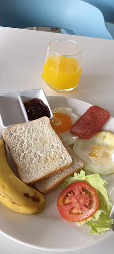 The breakfast contains of a menu of 5 choices, I believe there were 3 or 4 Filipino breakfasts and an American breakfast. My daughter and I were happy to take the Filipino breakfast everyday and really enjoyed this. My wife (Filipina) took the Filipino ones but was dissatisfied each time.