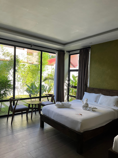 Read moreSehr schönes Hotel, ca. 2km entfernt von Alona Beach. Das Hotel wirkt recht neu (bis auf den Pool) und hat einen toll angelegten Garten, der vom Personal perfekt in Stand gehalten wird. Die Zimmer sind geräumig und sehr ästhetisch eingerichtet. Unseres schien noch nicht ganz fertig gewesen zu sein, es fehlten noch die Wände der Duschkabine, der Halter fürs Toilettenpapier, die Badewanne, etc. Was aber kein Problem darstellte. Aber leider war es ziemlich staubig, vor allem auf den Ablageflächen, was sich auch während unserer 5 Tage dort auch nicht geändert hat. Ein großer Pluspunkt ist die Waschmaschine, die man als Gast kostenfrei nutzen darf. Toller Service. Zu den Besitzern kann ich recht wenig sagen, da man sich nie wirklich gesehen. Nicht gut fanden wir das Frühstück. Es gibt jeden Morgen einen fertig gerichteten Teller mit Ei, Toast und Hotdog. Außerdem gibt es im Hotel keine Möglichkeit zu essen, d.h. man ist auf einen Roller oder Tricycle angewiesen, um zu einem Restaurant zu kommen. In Laufnähe befindet sich ein winziger Supermarkt. Die Küche im Hotel kann mit genutzt werden. Alles in allem sehr schön mit kleinen Mängeln. Uns hat es etwas an Seele gefehlt, aber das ist...