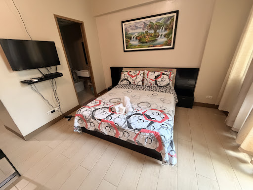 Read moreCompared with accommodations of the same price range in Philippines, this room has great value. Can walk along a beautiful clean street then turn right to the Footbridge to NAIA Terminal 3. The whole footbridge walk is indoor, with aircon I think, modern and new. Before I came there, I thought we had to walk along a noisy street to the airport but no. The room we got is in Two Palm Tree on the 2nd floor. Very old furnitures but surprisingly the bathroom is new and clean. Excellent services from both Security and Reception staff. So happy to stay here as it’s a clean and modern zone. Always see security staff on the street even around 5am so we feel very safe. No keycard for elevator, room key is traditional key but I feel very safe. There is always someone there so outsiders can’t enter.||We walked a bit to the left and bought some snacks in Metro Supermarket. Eighty One Mall is there too but looks small and not interesting to me. On the other side of the street is the zone which looks older, narrow with more local people, tricycles for rent, etc. We also walked to the right side of our place and this zone is all modern, high-end and clean with a convenience store and some shops. Sad that the rice box I bought from Lawson was rotten and I had to throw away. Too lazy to come back there to return...