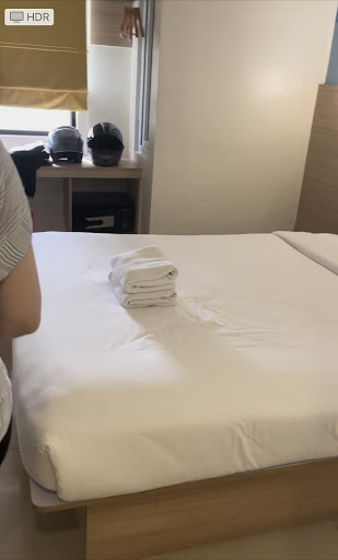 Ā Ā Ā Read moreA NAME = A STATEMENT š ROOM The hotel is well advertised, what you see is what you get: a very clean spundproof room with great WiFi, tv, full lengh mirror, desk, aircon, electrical socket above nightstand and good city view. Blind bathroom with ventilation, warm water shower, liquid soap (which all of these are not always a given in the Philippines). The rooms also comes with a safe for your precious etc. We did a soundproof test and the room is fairly soundproofed. First impression was that the room was very well cleaned. The WiFi is fast enough and their TV has many channel choices, also cartoon channels if you have kids. BED The mattress is comfy for me and upon checking there is a thin topper under the bedsheets which does its job. Not really sure if it's a spring or hybrid mattress but it's not memory foam. My husband didn't like it that much because he is too used to our cloud-like mattress at home. The bed frame is minimalistic: basically a wooden board, no slats. PERSONNEL Kind/professional/helpful guards, reception, and cleaning staff. Parking lot on floor levels feels safe and private. The building is well guarded and the guards give off kind welcoming vibes. SERVICES We cheked in friday afternoon and checked out sunday noon, it was very fast, no much wasted time queuing or waiting. The hotel doesn't provide breakfast or any meals but there is a Lawson and 7eleven attached to the building just ground floor, so no problem. CONS The room doesn't have toothbrush, toothpaste, shampoo or hair conditioner so you need to bring those or buy them below in the 7eleven. The room desk has only 1 chair, if it had 2 chairs it would have been better as the room is obviously intended for 2 people since the bed is big. OVERALL CONCLUSION Amazing fairly priced experience, as a straightforward couple we are very satisfied with our stay, and will book with this hotel chain again when needed...