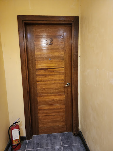 It's a wooden door. There's a little bit of noise coming from the hallway