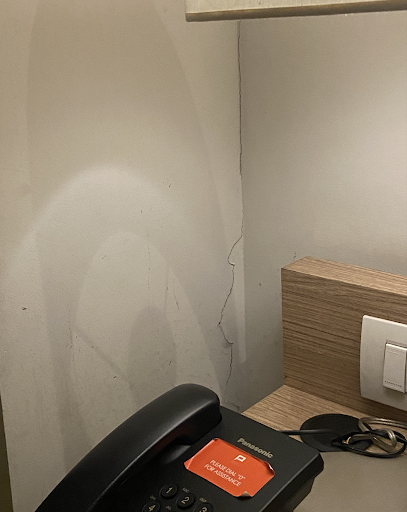 Cracks all over the hotel walls. The toilet and overall sewage had a smell. Some of the bathroom floor tiles were lifting up. Unlike other (budget/4-star) hotels, the door did not automatically lock upon closure. Barely any provided toiletries and bath necessities. The only things provided are as follows: 1 small and round soap bar, 2 dental kits, 2 pairs of hotel slippers, 1 body/shampoo bottle by the shower. The shower wasn't spraying water as smoothly as expected which could be due to like mineral build up or something. Limited parking. Room has limited lighting. It's more of mood lighting so if you're thinking of working through the night during your stayâ it might not be the best hotel for you. Our room had no proper desk lamp either. Seat by the desk had obvious stains. Found random staple wires in my bed. Walls are THIN. I literally could hear the person next door sneezing. Wifi isn't as reliable as I'd hoped.