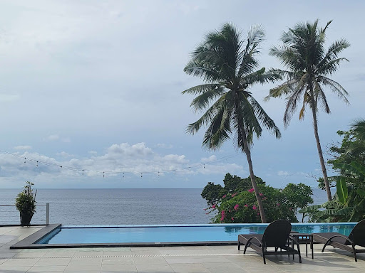 ย ย ย Read moreI thought the pictures online looked good, but the view is better than can be captured with a camera. It's a panoramic view from left to right with ocean as far as the eye can see, bookended by coconut and banana trees, and some vivid pink flowers. I couldn't stop sharing pictures of this view to my friends back home. I sat out here every morning with my laptop to catch up on emails, and then at meal times when I wasn't out doing activities, and then again when using the pool or getting a massage.