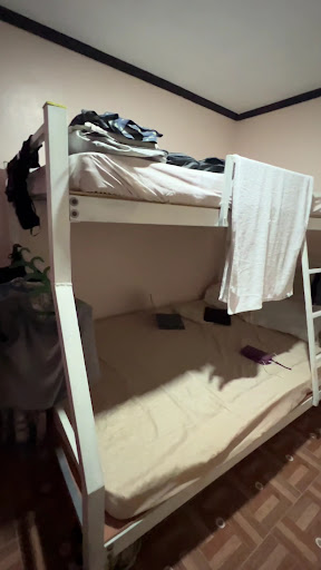 Room: it was not big, but it was enough. We had a double bed with a single bed on top. The bed wasn’t the most comfortable, but manageable. There was a table that we could eat and work a bit. There is a big sink outside the bathroom, which is good to wash the dishes that they provide. The shower is separated from the toilet (which is great and rare in the country). However the water pressure from the shower was not good. Location: for us, this is the best location in San Juan. You are two blocks away from the beach (although we recommend walking 1,5km to the right so you will find one of the best beaches in the Philippines), and you have everything close to you, walking distance: restaurants (fancy and local ones), markets, bakery, motorbike rentals etc.