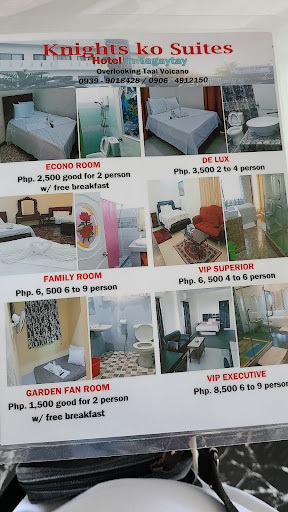 Read moreMy second time to stay at Knights Ko. Place is situated along the highway with an excellent view of Taal volcano. Staff were super accommodating and friendly. Ate Darlene was easy to talk to. The family room which can accommodate around 6pax was relatively cheap at around 4K, is located on the first floor. My advice is to get rooms from first floor up. Rooms located at the basement doesn't offer any view whatsoever (tho cheap). For those who just happen to be in Tagaytay for an unscheduled roadtrip, try Knights Ko. Place is accessible, rooms are cheap, food is delicious, there is ample parking and the view fronting the hotel is...