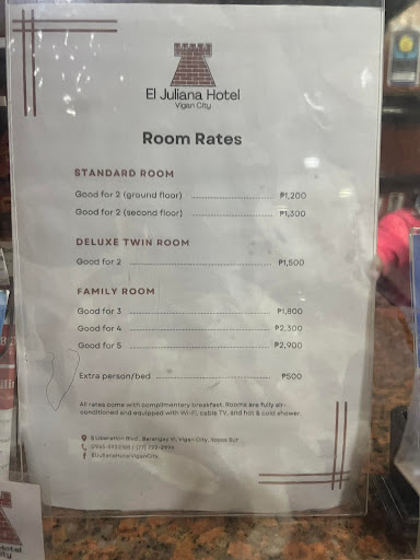 Read moreAn affordable price for the three of us with Filipino breakfast included. Just a short walking distance to Calle Crisolog. The hotel is quite old and scary outside but that's what it is since we are told that if you buy an establishment or building in Vigan, you can't change the structure outside, only the inside. The lobby and the corridor are really that old so if you believe in ghosts, this is not for you but I believe most of the hotels and transient houses here are the same. Okay, so when it comes to rooms, my friends and I were satisfied. They are modernized and furnished. Our room is big enough, with WiFi inside, TV, AC and a huge bathroom but it's a little bit dusty as the window was opened. My friend locked the bathroom door by mistake, we asked the staff to open it but they didn't have a key. They called a guy(he's working there I guess) to fix it with a screwdriver. I just didn't like how he talked to us like he seemed to be mad at us by doing that. Come on! We're guests, he should have treated us nicely as we asked them nicely too. Also, the hotel has a jacuzzi and a pool but no water and we couldn't use it during our stay as the staff said they will fix it on Monday but it's fine for us, we didn't stay there just to use the swimming pool. To make it short, I will recommend this to everybody but make sure not to lock your bathroom door if you don't want to be...
