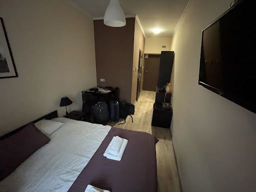 I have spend here one night on my business trip. Room was quite small, but for one night was absolutely enough. It was clean, with tea/coffee amenities, bottled water and really delicious apples. I had room with window view on the side of Piotrkowska street (Main Street of Łódź), so it is very noisy if you open the window. |Staff at front desk (open 24/7) is very friendly and helpful. The only problem is lack of elevator- you must walk stairs, so if you have walking disability it might be difficult (front desk is on 1st floor, rooms from 1st floor up) to climb those stairs. |Breakfast was, in my opinion, a little bit pricey. 29zl for Łódź and for this selection is a little bit too much. If you are vegetarian you will not leave breakfast restaurant hungry (but maybe not very happy), but I would not recommend it to someone who's vegan. Fruit and veggies selection is quite poor (maybe only on late fall/winter time?). |After all this is nice place to stay, in absolutely center of the city (with all pros and cons that gives you), with clean bed and helpful staff. And there are so many restaurants and cafés on Piotrkowska breakfast on the spot is...