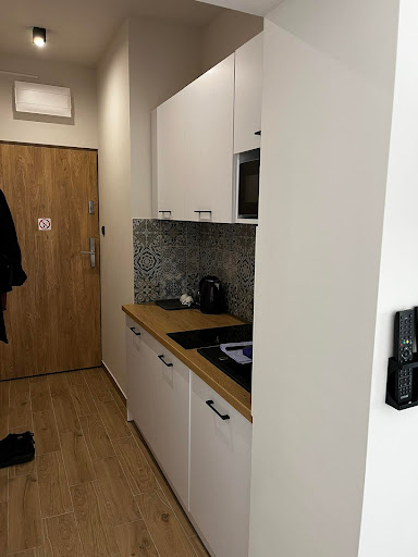 Read moreMiejsce to w pełni spełniło moje oczekiwania. Do Łodzi przyjechałam na koncert, więc szukałam noclegu, by rano wrócić do domu. Obiekt ten jest w przystępnej cenie a jakość jest naprawdę dobra. Pokoje czyste i przestronne. W pokoju jest telewizor oraz stół z krzesłami. Łóżko jest wygodne, jednak na łóżko dwuosobowe jest tylko jedna kołdra. Łazienka także zadbana, wszystko w porządku. Dodatkowo w pokoju był aneks kuchenny, z płytą indukcyjną oraz mikrofalówką - co znacznie ułatwia przygotowanie szybkich posiłków. Jedyna uwaga to skomplikowane zamki elektroniczne, ale po nieudanej próbie wszystko zadziałało. Mimo wszystko dzięki temu obiekt jest dobrze zabezpieczony, a co za tym idzie czuje się tam bezpiecznie i spokojnie. Polecam, jeśli będę znów w Łodzi na pewno...