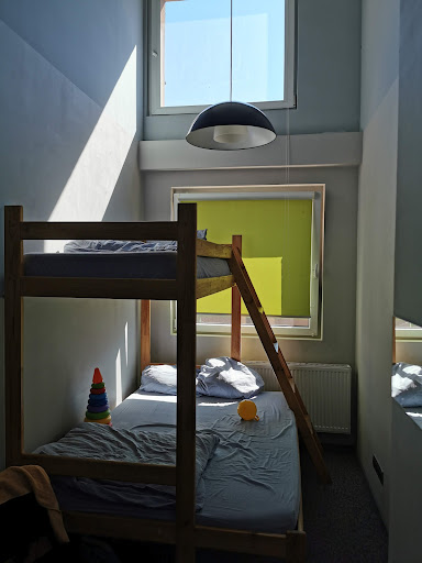 Pretty good hostel! My first stay was in a cramped room, but this time I got a spacious one for 4, with lockers, chairs, and a good table. The kitchen is big, well-equipped, and has coffee and tea. Showers are clean, with good water, hangers, and a chair. There are comfy sofas around too. The lady at reception was super friendly, and check-in was easy. They also have a washing machine. Downsides: the toilet upstairs was quite dirtand mirrors. Also, the washing machine is oddly located in the ladies’ toilet. The entrance looks sketchy inside a cement yard, but it's totally safe -a bit hard to find from the street. Towels aren’t included. I'd still recommendy during my two-day stay, beds could use curtains, rooms need...