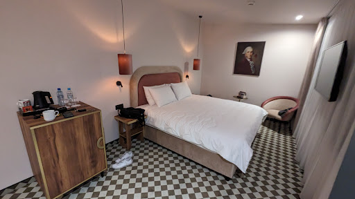 Read moreThis hotel is about 1.4 kilometres from the main Lodz railway station, but reachable by tram.||It is in one of the most attractive streets in Poland, famous for its architecture.||I was welcomed with smiles from a very pleasant girl.||My room was spacious with a delightful Queen bed. The colour scheme, a mix of pink, beige and olive green on the desk chair and two coffee table chairs was trendy but not to my taste. However some will like it.||Linens were top class. Lighting was excellent including reading lamps bedside.||There was a good minibar style fridge and a safety deposit box. The wardrobe was roomy.||A portable suitcase shelf was useful. Tick!||Tea, coffee and a kettle were on offer.||WiFi worked properly.||The curtains were very good in blocking light.||There was no noise from adjoining rooms.||The bathroom was pink, not a colour to my liking. The walk-in shower worked well. A hairdryer was present.||The aircon was ever so slightly noisy but was effective.||Breakfast was available for PLN69 but I...