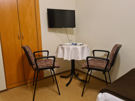 Read moreObsługa recepcji bardzo sympatyczna. Blisko do przystanku autobusowego. Cena niska adekwatnie do standardów. Ogólnie cały ośrodek to lata 80. Pokoje przydałoby się odświeżyć. W pokoju brak czajnika - trzeba wypożyczyć z recepcji. Za ręczniki trzeba zapłacić kaucję w recepcji bo w pokoju ich nie ma. W pokoju są szklanki ale sztućców czy talerzyków brak. Jest za to mała deska do krojenia ale najpierw trzeba sobie ją wymyć bo cała się kleiła. Nie ma nawet mydła do rąk w łazience. Brudna kabina prysznicowa i mocno brudna kratka wentylacyjna znajdująca się nad kabiną. Pościel czysta ale poszewki posiadają dziury. Koce na łóżku mają nieprzyjemny zapach. W pokoju znajduje się lodóweczka ale bardzo głośna. I ogromny minus to temperatura w pokoju. Nawet przy 9 stopniach w nocy pokój jest nieogrzewany. Jeśli potrzebujemy taniego noclegu aby tylko się przespać to da radę przymknąć oko na...