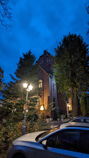 We stayed here for 3 nights from 17th to 20th of July, it was very nice. It is an old Chateau We stayed here to attend our Grandsons wedding. We had Room one, up quite a few stairs, but worth the effort. It had a bed room with 2 double beds and 1 single bed. In the room area it had another double bed and 3 fold up beds, I think it sleeps 9-11 people. It had two shower rooms both very nice. It is in its own grounds with lights around the trees, lit at night, and a large terrace to have your drinks. When we went we got free continental breakfast, and free Wi-Fi. so that was good. It is with in walking distance of the town square and shops. Train station is close by, but not sure how close as we didn't go. But did hear the trains. It is an hours ride from Wroclaw airport. It cost us 1440 polish zloty we got 5.506 to pound but that was...
