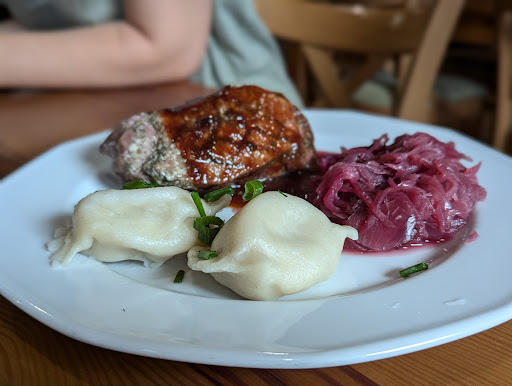 Read moreŚwieżo po pobycie powiem jedno…wspaniałe miejsce, stanowiące bazę wypadową co do okolicznych szczytów i innych atrakcji. Rewelacyjna lokalizacja do wyjścia w trasę na Organy Wielisławskie, jeżeli ktoś chce tylko podejść do samych Organów, ma do przejścia może z 500m. Najpierw co do restauracji: jedzenie świeże, bardzo smaczne. Określiłabym je wręcz jako”domowe”. Kuchnia słynie z gęsiny, która faktycznie jest dobra, ALE! Nie powinno się przy tym umniejszać innym daniom, moje serce zdobyły zrazy wołowe (delikatne, soczyste, zero zastrzeżeń). Z restauracji testowaliśmy: sałatkę z gęsiną, pierogi ukraińskie, zrazy wołowe, zupę pieczarkową, rosół z kołdunami, kompot, regionalne piwa i szarlotkę. Wszystko naprawdę smaczne, jedynie szarlotka dla mnie mało wyrazista w smaku. Wszystkie dania obiadowe, muszę powtórzyć, BARDZO SMACZNE 🥰Porcje jedzenia są naprawdę w porządku, ceny nie są wygórowane. Można spróbować regionalnych piw:). Co do obsługi- bardzo sympatyczne osoby! Doradzą w kwestii jedzenia, jak i pobliskich miejsc, które warto zobaczyć. Co do noclegu: pokoje schludne, czyste. Faktycznie materace są ultra miękkie, ale zarówno mi jak i partnerowi nie przeszkadzało to przy spaniu. Brakowało mi jedynie żelu do kąpieli, przy szybkich wypadach człowiek nie myśli, aby wziąć coś ze sobą, a i jest przyzwyczajony do tego, że w większości miejsc oferujących nocleg zapewnienie żelu/mydła do ciała jest oczywistością. Co do wifi- również potwierdzam, praktycznie nie działa, zasięgu również brak. Ale ponownie, zarówno dla mnie jak i dla partnera nie był to problem, przyjechaliśmy zwiedzać, a nie siedzieć na telefonie. Uważam jednak, że warto byłoby dodać na stronie informacje na ten temat, aby osoby pracujące zdalnie nie miały problemów. W pokoju pomimo odkręcenia grzejnika z lekka chłodno, na plus to, że kołdra faktycznie zapewniała ciepło. Śniadania smaczne, kelnerka na życzenie przygotowuje jajecznicę bądź naleśniki. Wybór nie jest ogromny, raczej jest to kilka konkretnych talerzy z lokalnym jedzeniem do wyboru. Pomijając drobne niedogodności typu: brak żelu po prysznic, słabe wifi, brak zasięgu oraz miękkie materace uważam, że jest to wspaniałe miejsce, które warto odwiedzić nie tylko aby skorzystać z restauracji, ale i aby wpaść na dłużej. Wspaniała lokalizacja, dobra kuchnia, przyjazna obsługa oraz przepiękny młyn nie pozwalają wystawić opinii innej niż 9/10 za całokształt. Dodatkowo, jestem pełna uznania dla tego do jakiej formy właściciele doprowadzili młyn, ponieważ patrząc po jego starych zdjęciach był on z lekka, ruiną- teraz na nowo tętni życiem w swojej...
