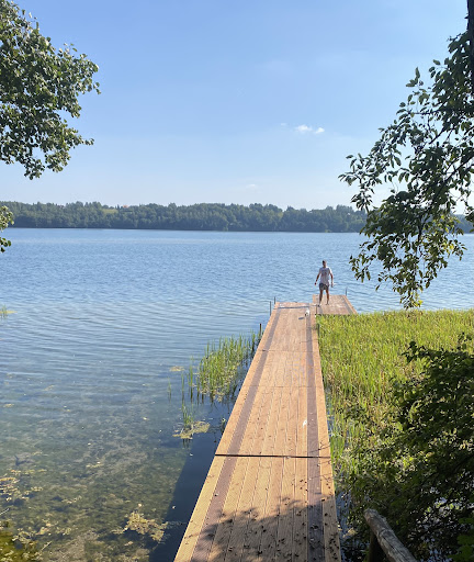 Świetne, spokojne miejsce. Widać, że właściciele wszystko dobrze przemyśleli. Wyposażenie domków począwszy od zmywarki, kominka na chłodniejsze dni kończąc na konsoli z pełnym wyposażeniem jak buzzery i kontrolery ruchu. Netflix, wi-fi na deszczowe dni. Na placu przed domkami boisko do siatkówki, mini bramki do nogi, pod wiatą piłkarzyki, dart, stół do ping-pong. Można pojeździć na rowerze lub skorzystać z grilla. Do jeziora 3 minuty drogi. Prywatny mostek.Mało tego przy mostku " garaż skarbów " do dyspozycji gosci sprzęt pływający włącznie z silnikiem elektrycznym i naładowanym akumulatorem, wędki. Ja miałem swój sprzęt wedkarski ale też ogromnym plusem był fakt że nie musialem go zanosić codziennie nad wodę gdyż zostawał w garażu pod kluczem. Polecamy i wrócimy...