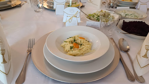 Read moreMaj 2023. Przyjęcie komunijne. Ale zacznę od przygotowań i ustaleń. Właścicielka bardzo pomocna, odbiera zawsze telefon. Umawia się w godzinach dostosowanych do klienta. Słucha życzeń klienta, nie robiła problemów przy zmianach w menu. Dzień przed można było wejść do sali, podejrzeć ustawienia stołów i rozłożyć sobie winietki. Pomimo, że na sali były inne komunie nie odczuwało się tłumów. Obsługa bardzo się starała, by wszystko wychodziło sprawnie. Dania bardzo dobre. Goście byli zadowoleni. Ciekawe nowoczesne podejście do podania mięsa na grzance,ale też tradycyjnie by każdy gość mógł coś dla siebie znaleźć odpowiedniego. Danie vegańskie również zostało podane na życzenie i spełniało oczekiwania. Przepyszne ciasta, pięknie podane. Owoce przyniesione w swoim zakresie, zaserwowane w elegancki sposób. Dania zimne również podane elegancko. Jest możliwość wyjścia na dwór. Jedynie czego brakuje to może jakiś atrakcji dla mniejszych dzieci, tak żeby rodzice mogli usiąść w spokoju z innymi gośćmi😉 Oczywiście klimatyzacja działała bez problemu. Nikt nie nocował w pokojach, więc w tej kwestii się...