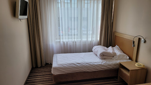 Read moreW tym hotelu mieszkałem przez tydzień, łącznie z weekendem. Hotel znajduje się przy ruchliwej drodze krajowej, plastikowe okna dają rady wyłumić hałasu. Dlatego radzę zamawiać pokoje dalej od wejścia. W pokojach jest bardzo mało światła. Dwa kinkiety że słabymi żarówkami nie spełniają żadnych norm. W łazienkach nie ma ręczników pod nogi przy wyjściu z kabiny prysznica. Śniadania są zawsze takie same z jedynie minimalnym asortymentem. Obiadokolacja to jedna zupa i dwa dania główne do wyboru, bez niczego do picia, o surówkach bardzo skromnych. Obsługa w recepcji raczej się nie przejmuje tym że od śniadania stoły nie są brudne a czas na kolację. Teraz pozytywy obiekt przeznaczony na wesela, właściciele są elastyczni cenowo przy dłuższym pobycie, darmowy parking...