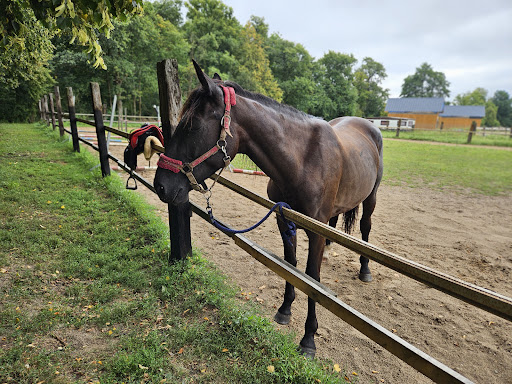 Odwiedziliśmy to miejsce w weekend. Zadzwoniłam i umówiłam na jazdę konno 2 dzieci- 5 i 7.5 roku. Przez telefon Pani powiedziała że nie ma problemu, zaprasza. Na miejscu zostaliśmy przywitanie przez kilkoro dzieci- 5 lub 6 jeśli dobrze pamiętam. Może 2 osoby wyglądały na pełnoletnie. Dziewczyny bardzo miłe, przygotowały konie do jazdy. Właścicielka nadal się nie pojawiła. Dzieci zaczęły "zaklepywac" która NIE- prowadzi konia bo jak wybrzmiało "już je to męczy". Ostatecznie konie były prowadzone przez nieletnie dzieciaki. Przechodziliśmy tymi konmi przy ogierze i owe dzieci wyrażał niepokój o zachowanie koni na których były prowadzone moje dzieci. Wszystko poszło gładko. Po około 5 minutach spaceru jeden z koni wystraszył się gołębia i zrzucił młodsze dziecko. NA SZCZĘŚCIE nic się złego nie stało ale zarówno dziecko jak i ja sama mocno się przestraszyłysmy. Resztę przechadzki na koniu jechała jedna z oprowadzajacyvh nas dziewczyn. Te 2 najstarsze zajęły się 2 dzieckiem - jedna trzymała konia a druga dla pewności szła koło nogi dziecka. Po zakończonej jeździe dzieci po rozmowie telefonicznej z właścicielką (która nadal nie pofatygowała się z nami spotkać) poprosiły o 100% ceny za obie przejażdżki. Odmówiłam opłaty pełnej kwoty bo po 5minutach dziecko spadło z konia. Właściciele telefonicznie zgodzili się na 50% ceny. Opinia bardzo negatywna. Po pierwsze z powodu obsługi przez małoletnich. Na dobrą sprawę sprawa powinna być zgłoszona na policję. Po drugie z powodu ignorancji właścicielki. Po trzecie wyciąganiu pieniędzy z ludzi mimo haniebnych zaniedbań bezpieczeństwa i kardy oraz wypadku dziecka.