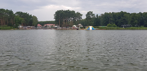 Read moreMiejsce z jednej strony dosyć urokliwe, ponieważ położone nad malowniczym jeziorkiem, z ładną bazą hotelowo-gastronomiczną, polem namiotowym i sanitariatami. Z drugiej strony spędzało tu czas dość sporo rodzin z małymi dziećmi, dla których był do dyspozycji cymbergaj, czy dmuchawiec na wodzie oraz kort tenisowy i boisko typu orlik, jednak z drugiej strony trochę tutaj nudno w przypadku braku pogody, brak innych kempingów w pobliżu, czy jakiegoś sklepu spożywczego. Możliwość wypożyczenie sprzętu wodnego (rowerki, kajaki - co prawda nie najnowsze ale są). Brakowało mi trochę organizacji będącna polu namiotowym z jednej strony ludzie wjeżdżali na p[ole namiotowe boczną bramą, która była cały czas otwarta, z drugiej strony wchodząc na plaże od strony hotelu Pani sprzedawał bilety, plus za obecność dwóch ratowników na molo, chociaż mam wrażenie że byli tam bardziej po to aby pilnować czasu jaki ktoś wykupił na dmuchańcu na wodzie, niż tym co dzieje się z ludźmi i gdzie pływają. Jednego dnia Pan ratownik nawet golił sobie głowę na molo maszynką elektryczną co było delikatnie mówiąc niesmaczne co najmniej a wieczorem na bazie gdzie urzędowali ratownicy było dość głośno do późnych godzin łącznie z fajerwerkami co dość mocno utrudniało spanie na polu namiotowym. Brak stałej obsługi recepcji - Pani biegała między recepcją a restauracją co jest dość dziwne dla mnie. Przy samej plaży buda sprzedająca różne fast-foody.