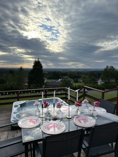 Read moreOrganizowałam wieczór Panieński dla mojej Panny Młodej. Lokalizacja - wymarzona. Nocą piękny widok. Kolacja i śniadanie z tego miejsca dosłownie magiczna! Jacuzzi super czyste. Domki czyste, przestrzenne, łóżka duże i wygodne. Panna Młoda była zachwycona i bardzo smutna jak wyjeżdżała. Właściciele mega, złapaliśmy kontakt szybko, bardzo mili i pomocni! Na pewno to nie pierwszy wyjazd tutaj. Niesamowite miejsce na oświadczyn w romantycznej atmosferze, czy panieński, lub wypad z znajomymi na...