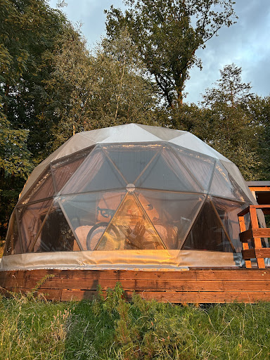 Wspaniałe miejsce na wypoczynek, czysto, cicho, bardzo komfortowo. Na terenie znajdują się dwa namioty, w kazdym 1 łóżko + 1 na antresoli, aneks kuchenny i łazienka. Na wyposażeniu domków jest niemal wszystko, czego potrzeba: talerze, sztućce, garnki, patelnie, szklanki, ekspres do kawy na kapsułki, płyta indukcyjna, czajnik, suszarka do włosów. Brak jedynie mikrofali. Dodatkowo gra (chyba eurobiznes, ale nie pamietam), karimaty, babington. Całość namiotu można dowolnie dogrzać, lub schłodzić klimą. Parking na kilka aut, duży trawnik o niewielkim spadzie terenu. Miejsce na ognisko z...