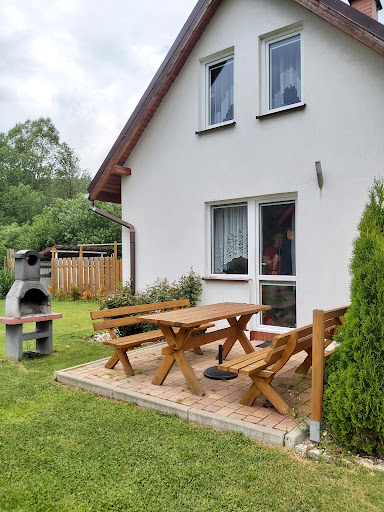Read moreBardzo fajne miejsce, ciche i spokojne. Piękny krajobraz. Bardzo przyjaźni właściciele którzy we wszystkim pomogą i wszystko wytłumaczą. Poza tym nie są nachalni, pozostawiają swoim gościom pełną swobodę aby poczuć się jak u siebie w domu. Domki świetnie wyposażone, salon z LCD z cyfrowym Polsatem ;-),kominek oraz WIFi, kuchnia z lodówką, mikrofalą, kuchenką indukcyjną i pełnym wyposażeniem (kawa,herbata, cukier itp.), łazienka prysznic i suszarka. Ciepła woda z bojlerów elektrycznych. Na zewnątrz ławeczki z parasolami i grillem oraz balia, dla dzieci trampolina, piaskownica oraz domek. Polecam wszystkim jak na razie jeden z najlepszych odwiedzonych przez...