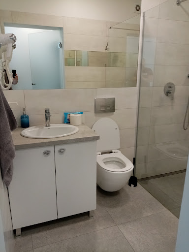 Read moreBardzo dużo plusów: osobne wejście, fajny wystrój, mega wygodny materac, fotele, leżaki przed apartamentem, parawan, suszarka i wiele innych. Są też minusy, detale, które niestety, nie tylko w tym ośrodku, ale w innych także mnie irytują : brak jakiejkolwiek półki, wieszaka przy prysznicu, więc kosmetyki muszą stać na podłodze, malutki aneks kuchenny, jeśli ktoś lubi pić dużą kawę - radzę zabrać swój kubek, ponieważ do dyspozycji są małe ikeowe filiżanki. Jeśli ktoś planuje gotować obiady, to radzę zabrać sztućce, noże, zastawę, gdyż wszystkiego jest po 2 szt, więc zbyt mało. Polecam też mieć zapas papieru toaletowego, gdyż to co jest absolutnie nie wystarcza, a poza sezonem nie ma gdzie dokupić... Trzeba też zabrać jakiś mały ręcznik do rąk. Właściciele mili, przepiękna trawa, dobre...