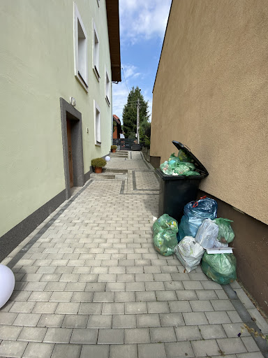 Na zewnątrz, w pobliżu pokoi, znajdują się przepełnione śmietniki, które nie są regularnie opróżniane, co powoduje nieprzyjemny zapach. Przechodzenie obok nich z jedzeniem wracając z kuchni do pokoju jest niekomfortowe.