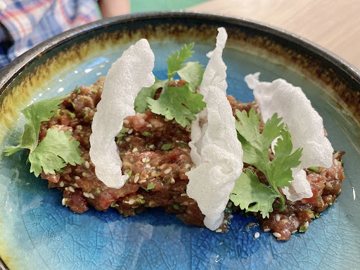 Groundfloor is a grill restaurant with inexpensive but not bad grilled meat. It's open air in the courtyard where all the hotel rooms also have their windows which is a bit of an issue sometimes. However they don't play loud music so you mainly have the sound of people talking.