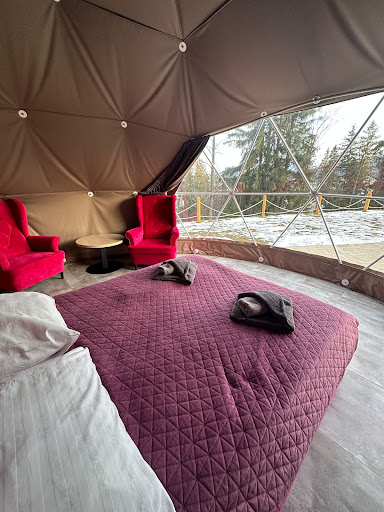 Read moreGlamp se nachází ve velice klidně lokalitě nad městem Zakopane, je zde hezký výhled na hory a do údolí. V okolí glampu se nachází další glampy jeden hned nad tím a další o kousek dál. Je z toho cítit průmyslovost a trochu to ztrácí to co má glamp ztělesňovat. Nicméně i tak, že se jedná o glamp vesnici zde byl klid a soukromí. Pokoje jsou nově a moderně vybaveny nicméně se nedají kvalitou srovnat s luxusními hotely - cena bohužel však ano. Chápu, že se jedná o neobyčejný pobyt a zážitek, ale i tak mi cena přijde přemrštěná. Je zde k dispozici soukromá vířivka, která však v zimním počasí není schopna při pobytu v ní udržet teplotu a postupně chládne, což je škoda. Vířivka pro nás bylo jedno z lákadel. V ceně jsme měli snídani, která byla přinesena v košíku před vchod. Byla průměrná, ale chápu že se nedá nic moc víc vykouzlit. Každopádně za tu cenu by alespoň nealkoholický napoj nebo džus nebyl od věci. Když bych to shrnul, tak je to jedinečný zážitek, který všem doporučuji, avšak cena i přijde přehnaná a neodpovídá nabízeným...