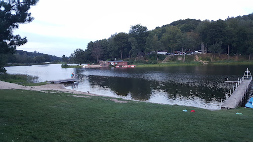 Pole zorganizowane jest przy samym zejściu do jeziora, które jest szeroką skarpą. Na górze jest więcej trawy i można odpocząć pod drzewami. Woda oznaczona jest na dwóch poziomach głębokości za pomocą boi. Są pomosty dla wędkarzy, miejsce na ognisko i dużego grilla.