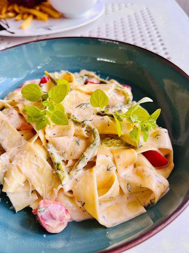 The Pappardelle (pasta) was properly cooked (al dente) - and the asparagus had the right crunch (not overcooked).