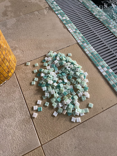 Poinformowałem panią z obsługi o kafelkach które wyłowiłem oraz o tym ze w strefie basenów panuje „syf”. Pani powiedziała ze jest od wczoraj i ze chłopaki coś tam ostatnio robili.