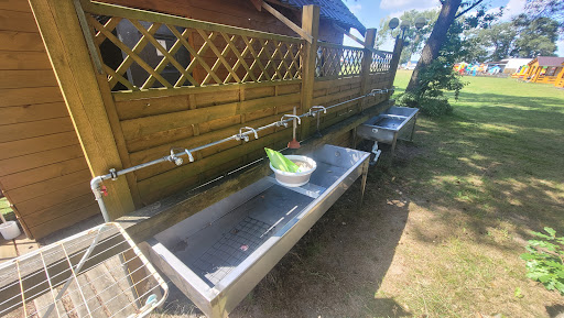 Z plusow: Miejsce z potencjałem, spory teren, brak tłoku, lokalizacja bardzo dobra, cicha, do Dino 7 minut jazdy, więc w sam raz aby podjechać uzupełnić zapasy, dostępna knajpka z ładnym tarasem, wypożyczalnia sprzętu wodnego. Z minusow: bardzo mała ilość przyłączy prądu. Zalecam zabrać ze sobą więcej przedłużaczy niz zazwyczaj, bo bez tego wybór dogodnego miejsca będzie ograniczony, bardzo mała ilość koszy na śmieci - przydałby się kosze, w głębi pola, 1 prysznic damski i 1 męski to trochę mało, jeśli trafi sie na większe obłożenie na polu, z racji słabego zasięgu gsm, przydałoby sie wifi na polu - czasem na urlopie trzeba jednak popracować i robi się problem w tym przypadku. Wifi byłoby bardzo pomocne sanitariaty takie sobie, brak dostępnych lodówek (lub przegapiliśmy) przydałoby się więcej drzew na środku pola w celu uzyskania więcej cienia, woda w jeziorze okropna (ale to nie wina campingu oczywiście, jednak warto mieć świadomość).