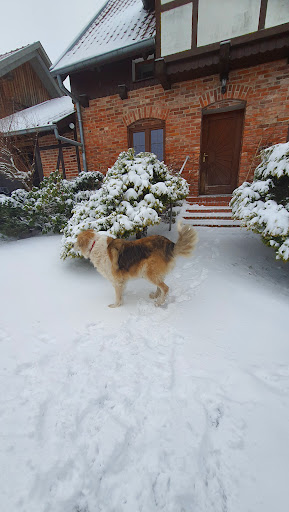 Pogoda nas nie rozpieszczała, w przeciwieństwie do gospodarzy. Czekało na nas przemiłe powitanie, lokalne produkty i kominek przygotowany do rozpalenia. Pomimo zimowej aury, w mieszkaniu było bardzo ciepło, śmiało wystarcza tylko ogrzewanie podłogowe, kominek był rozpalany aby zbudować zimowy nastrój. Wyposażenie domu zawierało wszystkie potrzebne rzeczy bez problemów udało nam się upiec chleb, zrobić pizzę oraz ugotować ciepłe posiłki. Dom znajduje się w spokojnym otoczeniu, w okolicy jest las, strumyk, pola i zadbany ogród. Miejsce w sam raz do ucieczki przed miejskim zgiełkiem. Psiaki są bardzo przyjacielskie i grzeczne. Miejsce...