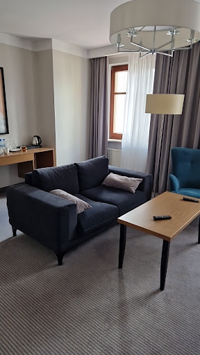 Absolutely love this hotel. The room had a small hallway with storage, and the bathroom and bedroom led off it.|The bathroom was spacious, although the shower tray seemed to slope down a bit, which was odd at first.|The bedroom was huge by UK standards and had a sofa and two chairs, plus a small desk area.|From the balcony, you could see the top of one of the towers of Wawel Castle. We were in room 22, and I understand that room 32 had a good view of the castle.|There was a kettle in the room, so we drank a cup of black tea every morning. There was also bottled water provided.|Everything about the hotel was clean.|The breakfast was very good, with plenty of choice. The lady in the breakfast room was very nice.|The location was very good. The walk over the river, with Wawel Castle to the side, was very pleasant. There were two little park areas on the route to the main square, and we sat and people watched. Being less fit than we once were, it took us quite a bit longer than the 18 minutes Google suggests. It is less than a mile from the hotel to the main square.|The main square has many options for lunch or dinner, and we ate in various restaurants during our stay. Only one gave us a physical bill, so it is worth totting up beforehand, as we are sure we were overcharged in at least one of them. They also add a 10% service charge, although the one that gave us the bill also gave us the option to pay for the food without the service charge. |Soft drinks seem very expensive in all the restaurants we went to.|The minor downsides to the hotel are that the WiFi was a bit slow, and the reception staff were not very patient, either at check-in or check out. Being English, and in our 70s, we did not know their systems, and we definitely felt irritation from the members of staff. |Having said this, I still...