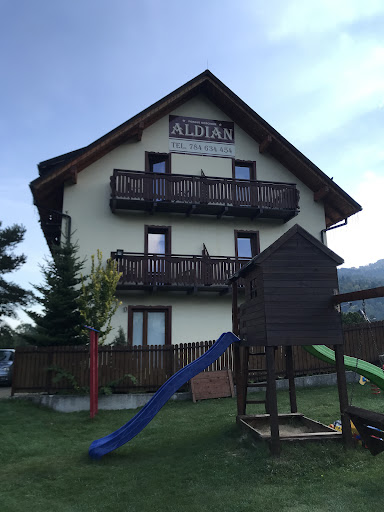 Serdecznie polecam pobyt w tym miejscu! Obiekt położony jest w idealnej lokalizacji dla narciarzy - tuż pod stokiem (gondola), gdzie można zejść dołem (główną drogą) lub chwilę pod górę, następnie włączając się do ruchu na trasę nr 3. Aldian jest wspaniale przygotowany: oświetlony, duży i skrupulatnie odśnieżany parking, przestronna narciarnia z suszarką do butów i zamykanymi szafkami (każdy pokój ma własną). W obiekcie jest możliwość zamówienia śniadań i bardzo smacznych obiadów (zupa + drugie danie, również w wersji wegetariańskiej) w korzystnej cenie. Pokoje ciepłe, przytulne, wyposażone w lodówkę, czajnik (zadbany, bez osadów) i naczynia, więc swobodnie można sobie samemu skomponować posiłek. Łóżko wygodne, tv z opcją zalogowania na własne „netflixy”, pościel i ręczniki hotelowe - białe, przyjemne, wysokiej jakości. Ponadto: balkon, widok na Skrzyczne a w pokoju przy każdym powrocie czuć przyjemny zapach. Bardzo blisko (3 minutki) do 🐸 po prowiant. Właściciele bardzo dbają o komfort gości, cały obiekt jest zaopiekowany i pełen uśmiechniętych, pogodnych, życzliwych i sympatycznych osób. Każdy się tu odnajdzie - bez względu na to, czy samotny podróżnik, czy para, czy rodzina z malutkim dzieckiem. Jeszcze raz...