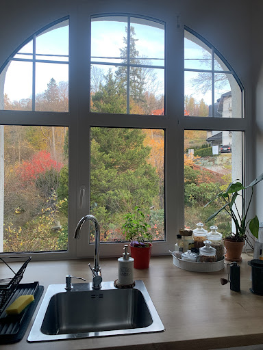Byla jsem v apartmánu M2, vše vypadalo skutečně jako na obrázku:-), ale vstup do domu mě trochu vystrašil. Jedná se o vilu z počátku 20.stoleti a vstup do ní moc pěkně nepůsobí, nepěkné stěny. prastaré schodiště uschlé květiny..., ale vše je asi v procesu postupných úprav. Stejně tak letitá zahrada volá po údržbě. Každopádně apartmán nabízí vše co slibuje, je zde úžasný klid. Jen je dobré vědět, že přestože se ubytování nachází na dohled od nádraží, tak je v opravdu velmi prudkém kopci. Parkovat se dá pod domem při silnici,je tam místo asi...
