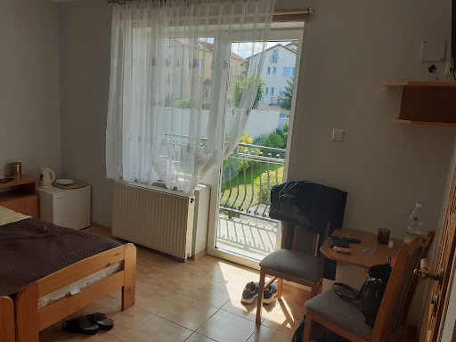 Jeśli chodzi o pokój typu comfort 3 os to 4/5 ogólnie w miarę czysto, ale łóżko 2os to 2 małe złaczone razem ze szczeliną w środku, drzwi ze szklem wiec trzeba zasłaniać, brak zaslon tylko roleta nie zasłaniająca calości,w łazience ręczniki są,słabo z gorącą wodą w kranach,jest letnia, uchwyt naderwany ale to standard wszędzie no i w łazience nie było dokladnie posprzątane na umywalce wlosy w koszu trochę śmieci no i w łazience ciągle było czuć kanalizacją. W szafie parawanik i kocyk jest:) pokój wyposażony w czajnik i lodówkę.Śniadania dość późno 9-10 ale za to bardzo smaczne i świeżutkie. Cicha okolica i spokojna z mojego pokoju widok tylko na sąsiadów. Do plaży blisko ale nie pieszą. Pani właścicielka baaaardzo miła,ale o opłacie klimatycznej informacje otrzymałam dopiero po przyjeździe +35zl no w sumie nie dużo....