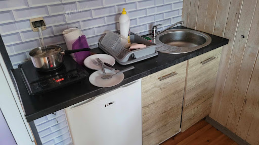 Read moreJakież było moje zdziwienie, gdy skuszona dobrymi opiniami, za nie małą kwotę Za 6 nocy zobaczyłam domek, który jest przyklejony do innych domków, zatem nie masz żadnej prywatności i słyszysz niemal wszystko co dzieje się za ścianą u sąsiadów. Domki są dedykowane dla 5 osób… Rodzice z dzieckiem to już w środku tłum. 5 osób, musi sobie wyrobić rutynę poruszania się po tej małej przestrzeni. 5 osobom musi wystarczyć jeden palnik, mała lodówka i dwa rondelki + mała patelenka. Z szafek w aneksie kuchennym śmierdzi zgnilizną. Czajniczkiem na raz zalejesz dwie herbaty. W łazience unosi się zapach, najpewniej jeszcze po poprzednich lokatorach. Brak półek na kosmetyki. Pod łożkami nieposprzątane. Pościel, to trochę waty obleczonej starą poszewką. W domku brak szaf, półki, gdzie luzem można rzucić rzeczy. Część półek ledwo się trzyma. Generalnie wszystko się tam ledwo trzyma. Rolety rozpadają się w rękach, przy każdym kroku ten domek „chodzi”, skrzypi, łóżka skrzypią przy najmniejszym ruchu. Mąż głośno kichnął pod prysznicem i domek się zatrząsł…Podłoga przy zejściu ze schodów dosłownie się zapadała, belki od schodów nie dotykały sufitu. Same schody tak strome, że ja bałam sie po nich schodzić co dopiero dziecko. Góra niczym nie oddzielona od dołu, w balustradzie takie przerwy że oczami wyobraźni widziałam jak moje dziecko tamtędy spada na ziemię, „balkon” a raczej duże okno w ścianie to samo, idealne szpary akurat pod dziecko. Jestem wściekła na wszystkich ludzi, którzy pisali że te domki nadają się dla rodzin z dziećmi. Może dla rodzin z dziećmi powyżej 5 roku życia, ale nie dla 2 letnich maluchów. Na placu zabaw w ostatniej chwili zanim moje dziecko zdążyło wyciągnąć rękę (a każdy kto miał/ma dwulatka wie jaka ta ręka jest szybka i jak szybko leci do buzi), złapałam nieżywa mysz. A z plusów? Właściciele są mili, ale też bym była jakbym oferowała ludziom za takie pieniądze takie coś. Plaża blisko 500m z niezłym zejściem. W nocy było cicho gdy mieszkały obok nas rodziny, gdy przyjeżdża młodzież nie liczcie na spokój i przyjemny sen. Nawet mój mąż, który nigdy nie narzeka był...