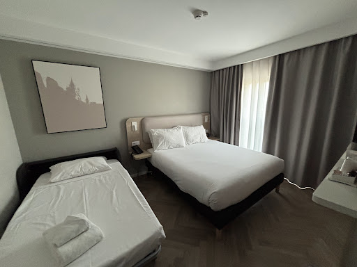 Read moreThe hotel opened just a few months ago—everything is very new and attractive. The avenue in front of the hotel has plenty of free parking. The hotel also has a paid indoor parking lot. The surrounding area is safe, even at night. The hotel is truly beautiful, more luxurious than others in the chain. The furnishings are functional and visually appealing. The room I stayed in was perhaps a bit small but had a huge wall-mounted LCD TV, excellent wall and ceiling lighting, and large windows. If the room had a fridge and a safe, it could easily be mistaken for a four-star luxury hotel. The bathroom was huge, also with wall and ceiling lighting. It had excellent fixed hygiene products with a great scent. Breakfast is served in the adjacent restaurant, accessible directly from the hotel reception. It was excellent, with a wide selection of sweet and savory items. The staff was attentive and present. There are many restaurants in the area, so I didn’t try the hotel’s restaurant for dinner. There’s a nice pool that belongs to the adjacent restaurant. Through a partnership, guests can access it for about fifteen...