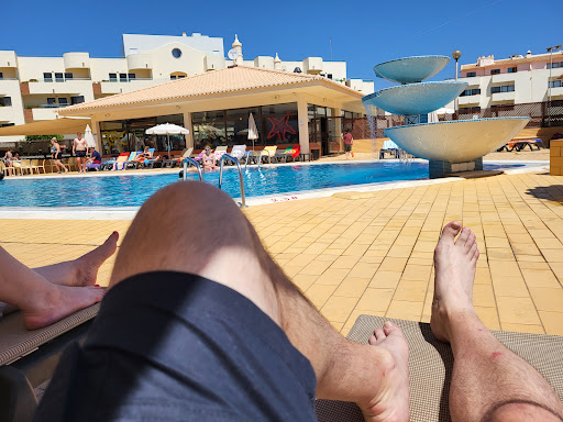 Read moreAfter reading the reviews before coming, i definitely felt some nerves, but I need not have worried! This hotel is outstanding! Is it a 5 star all-inclusive?! No, of course it's not, but don't believe everything you read. Granted,everyone has their own experience, and here is ours (and we are still here!)|Arrived early Sunday, so the room was not ready, but no problem! They have a luggage room to store,and we went down to the fabulous beachfront where there are an assortment of cafes, restaurants, and bars! We then came back at 1 pm and our room was ready. It's massive (room 106). It has a pullout in the lounge/kitchen/diner and a bedroom with 2 singles. The bathroom has one of the best showers I have ever had in a hotel (and I have been to a lot), and you have everything here to enjoy a great self-catering holiday! |There is a supermarket less than 5 mins away, which is like Lidl/Aldi, with fresh baked goods, fruit, fresh fish counter,toiletries, so if you have forgotten something, do not fret!|They love a happy hour out here, so the going rate is €3 for a large beer (be careful, the local beer which is Super Bock is pretty strong 🤣), and they also do a happy hour by the small pool at the hotel for €2.50 12pm-6pm.|The pool areas are lovely and clean, and there is a snack bar where you can purchase an assortment of food and drink. There is no need to do the old song and dance with the sunbeds. We have been down there at half 9 and got some (family of 4). Be aware that the main pool and smaller pool are very deep, but there are kids' pools as well.|The staff are absolutely brilliant, from the gorgeous ladies who clean the rooms to the wonderful staff at the reception and the pool area/restaurant staff!|There is a fridge,kettle,toaster,microwave, and a hob in the room, so we have done the majority of breakfasts in our room, as well as lunches. The air-conditioning worked perfectly during our stay, which was very welcome as it was 37c on Sunday at about 6pm! Also people who say the rooms are dated, they are not, they are just in keeping with Portuguese charm. If you are looking for something flash and modern, then you will not get it here, but we did not want that, we prefer a more inkeeping experience.|The beach is less than a 5 minute walk away, however what I would say is if you have mobility issues, it is tricky as its a pretty steep hill down,and what goes down must come up!|If you take a right outside the hotel, where the cats and wine shop is, and walk down for 5-10 minutes, there is a fabulous beach with an assortment of water sports on offer. Would also highly recommend a trip to Vilamoura. It is absolutely stunning, lots of bars and restaurants by the marina, and the majority of boat trips leave from here. You're looking around €15-€20 each way, but it is well worth it!|All in all we would absolutely recommend this hotel to anyone who is happy to do self catering. We shall definitely be back!|Keep up...