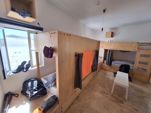 Can only say good things about our visit to Carrapateira, and our stay at Hostel Do Mar. The owners, Pedro and his wife and young son live in the same building in their own apartment. The Hostel is designed to accommodate groups couples and singles efficiently, and warmly. There is a great woodstove in the common living room/ kitchen with guitars to play, stereo, and tv/DVD's. |The comfortable mattresses and cozy quilts made our nighttime rests just like home. |The location is ideal for access to the great little village for snacks, meals, and groceries with a fresh produce market. That, and it's right on the Rota Vicentina for a spectacular walk out along the beautiful scenic Fishermans Trail along the coast with sandy beaches and flora and fauna galore. |We hope to be back soon to enjoy the hospitality of this hostel, one of the most enjoyable hostels we've visited....