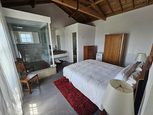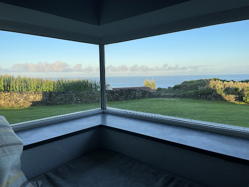Read moreWir buchten dieses Hotel, um im Urlaub einen Ort zu finden, an dem wir zur Ruhe kommen und ganz für uns sein durften.||||Die Wohnungen werden als "Studio" bezeichnet. Dies trifft insofern zu, dass es sich um einen einzigen großen Raum handelt, der eine Kochecke, ein großes Bett, eine Couch, einen Esstisch, ein großes Steinwaschbecken und eine große gläserne Duschkabine mit Steinwanne beinhaltet. Nur die Toilette ist mit Wänden abgegrenzt. Das Zimmer ist geschmackvoll eingerichtet. Der Kühlschrank wird täglich nach Bedarf mit Käse, Schinken, Eiern, Joghurt, Wasser, Saft, Milch, Marmelade, Honig und sogar zwei Flaschen Bier gefüllt. Cornflakes, Obst, sowie ein Kaffeeautomat mit Kaffeepads stehen auch zur Verfügung, sodass immer für ein großes Frühstück gesorgt ist. Frisches Brot wird morgens über eine kleine verschließbare Kammer von außen hineingelegt. Die Gäste können es dann später von der Innenseite aus der Kammer entnehmen. Die Steinhäuser liegen alle mit traumhaftem Blick zum Meer. Holz und Feuerschale stehen kostenlos zu verfügung. Zwischen den einzelnen Studios ist genug Platz, sodass für Privatsphäre gesorgt ist.||||Alle Häuser liegen versteckt hinter einem Berg und sind unsichtbar von der Zufahrtsstraße aus. Auch ein schöner Pool mit Liegestühlen ist angelegt, von dem aus man das Meer beobachten kann.||||Einziger Nachteil: Man fährt leicht an der Einfahrt vorbei, da nur das Schild "Pico da Vigia" darauf hinweist und die Häuser von der Straße aus nicht zu sehen sind. Zudem ist die Zufahrtsstraße ein unbefestigter Feldweg. Mit dem Auto sollte man sehr aufpassen, da es leicht passieren kann, dass man auf der unebenen Straße aufsetzt. Es gibt auch keine Rezeption - der sehr freundliche Manager wohnt in einem Haus etwas weiter oberhalb der Wohnungen, gut zu Fuß zu erreichen. Dort trifft man ihn meist an.||||Wer etwas geräuschempfindlich ist, sollte für die Nacht Oropax mitnehmen, da die Zikaden sehr laut zirpen und die Möwen auch nachts stellenweise laute Rufe...