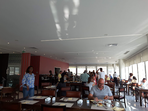 Read moreThis was the biggest and busiest hotel we stayed in on our driving tour of Northern Portugal. Opinions will differ on the look of the place: a striking modern building making a bold statement, or an ugly cube dropped beside the canal basin. On a practical level, it did seem odd that the horizontal stripes which dominate the exterior, partially block the views from the windows on the inside.|We had a room on the 6th floor overlooking the canal. It was clean and comfortable.|The staff on reception were very helpful, making a phone call on our behalf to check availability with the company who offered bird watching tours of the lagoon. (Sadly fully booked).|The restaurant: There was a good range of choices for breakfast. We had booked a half board package and were pleased with the food on offer in the evenings. However, for one of the evening meals we found the restaurant overwhelmed by delegates from a conference that had been held in the hotel, with nowhere for us to sit. To his credit, the maître d’, who was incredibly busy, went out of his way to accommodate us in the bar area and did offer us the opportunity to dine in a restaurant on the other side of the canal basin.|Overall, a little too busy for our taste – bigger than we imagined. Efficient but...