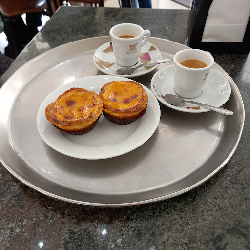The Café is across Aveiro Train Station, and it is on the first floor of the White-color hotel building, Tricana d'Aveiro. The cafe always has some customers who order its Portuguese custard tart and sometimes other pastry with Portuguese espresso.