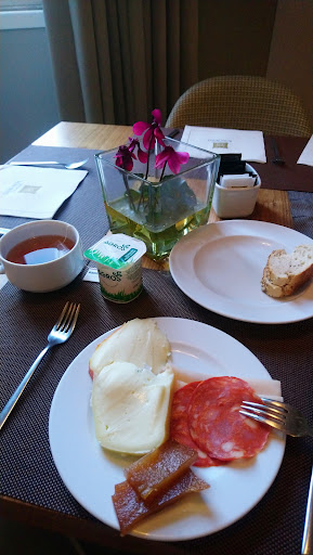 Wonderfully situated hotel, on top of a hill overlooking Braga, right next to the beautiful Bom Jesus do Monte church and its magnificent Baroque stairway. There is (limited) free parking right in front of the building - you will get reimbursed for the 1 Euro you pay at the entrance to the parking lot a bit further down the hill.||The hotel is classy yet modern, with a minimalistic and well-kept interior. After a professional (yet somewhat lengthy) check-in by the receptionist, we entered our huge room. The bathroom area is integrated into it in a way that might make it a bit difficult for people seeking privacy, but for us it worked perfectly fine. The bed was large and comfy, the quiet surroundings made for a deep and undisturbed sleep (the church bells don’t ring during the night). We appreciated the chic furniture but needed some time to figure out how the many different light switches were connected to the actual lamps.||The only real downside was the breakfast: served in a not too inviting room, with unwelcoming staff not caring about COVID rules (allowing some guests to help themselves at the buffet without using the mandatory gloves). The selection of food was also mediocre at best, the quality even worse. A bummer in a hotel which we would otherwise...