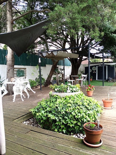 A área de serviço para refeições era adorável. Mostrava muito mais o estilo português da casa, mantendo alguns pormenores super engraçados. Está super bem apetrechada e organizada: cada quarto tem direito a uma caixa e uma prateleira frigorífica onde guardar os seus pertences alimentícios, ambas bem identificada com o nome do quarto, para que se distinga facilmente a quem pertence o quê. O café que disponibilizam é uma delícia que não estávamos à espera. Da zona de refeição dá para o jardim que é muito queridinho e que se nota que, tal como tudo neste estabelecimento, é tratado com amor.
